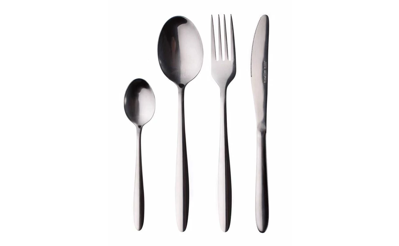 A szett tartalma: 6 db evőkanál, 6 db villa, 6 db kés, 6 db teáskanál