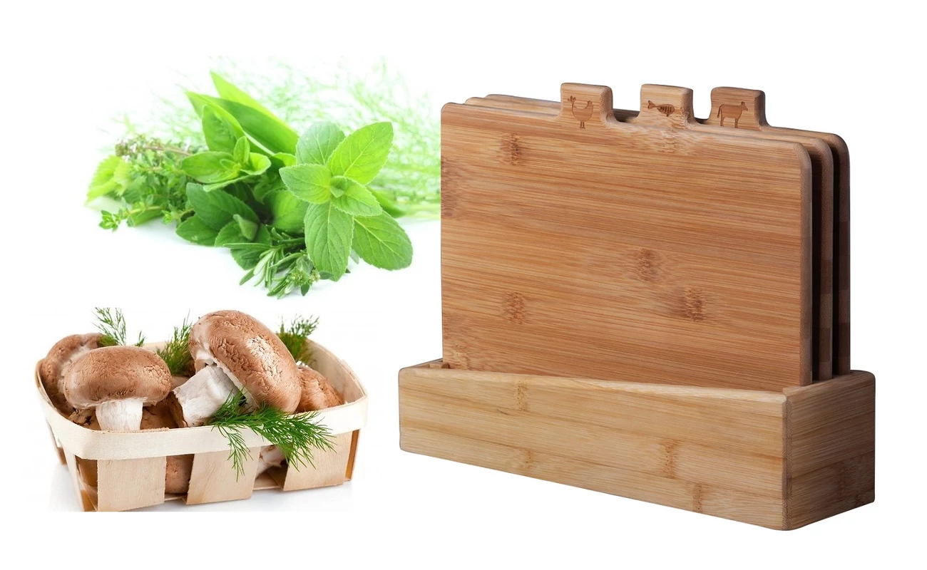 A Berlinger Haus 5 részes bambuszból készült vágódeszka szettel, és a hozzá tartozó praktikus állvánnyal kényelmes lesz a főzés. Mindegyik deszka egy-egy jellel ellátott , így nem fogod összetéveszteni a húshoz, vagy a zöldséghez használt deszkát egymással.