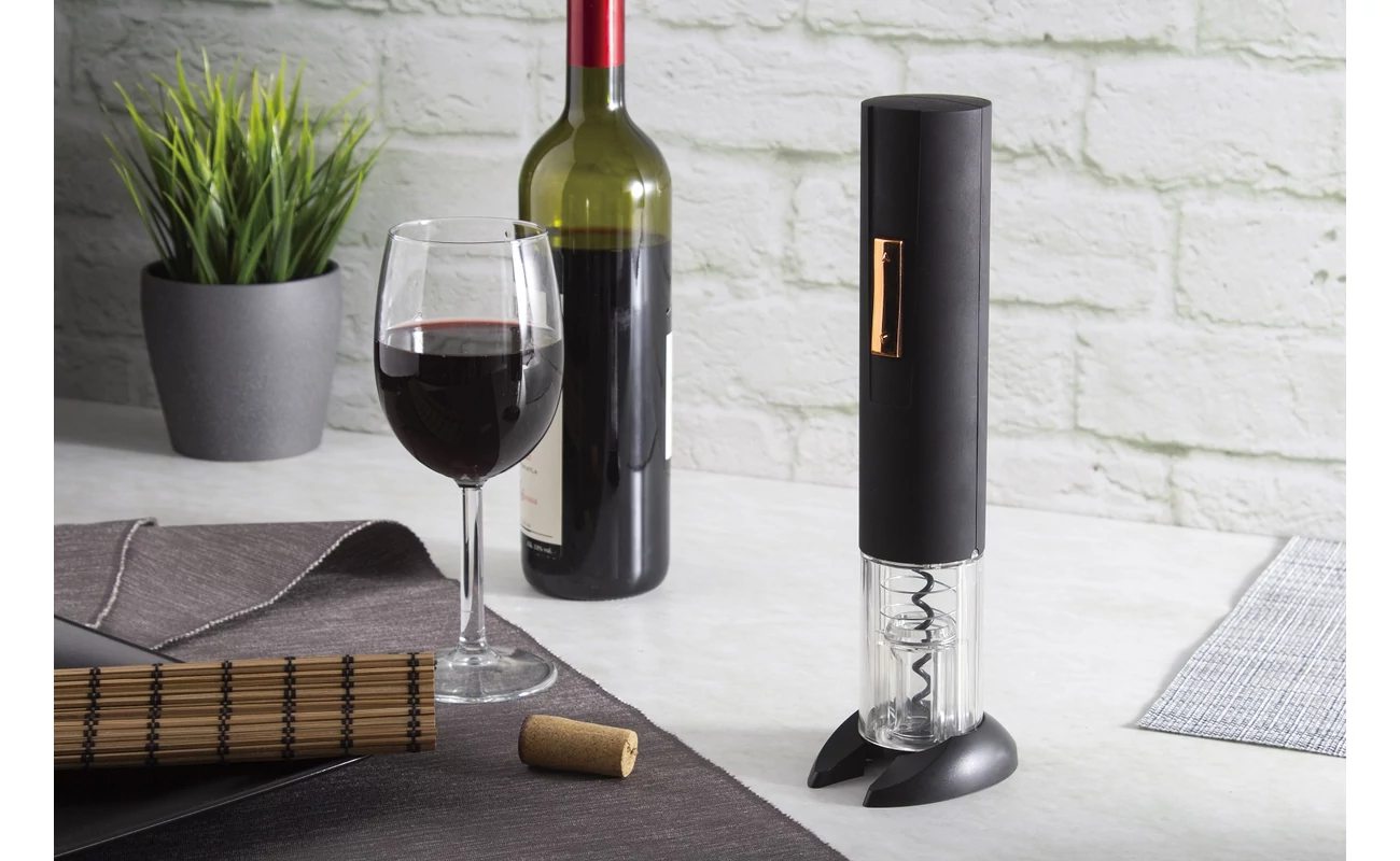 az elektromos dugóhúzó 8 másodperc alatt automatikusan kibontja a bort.