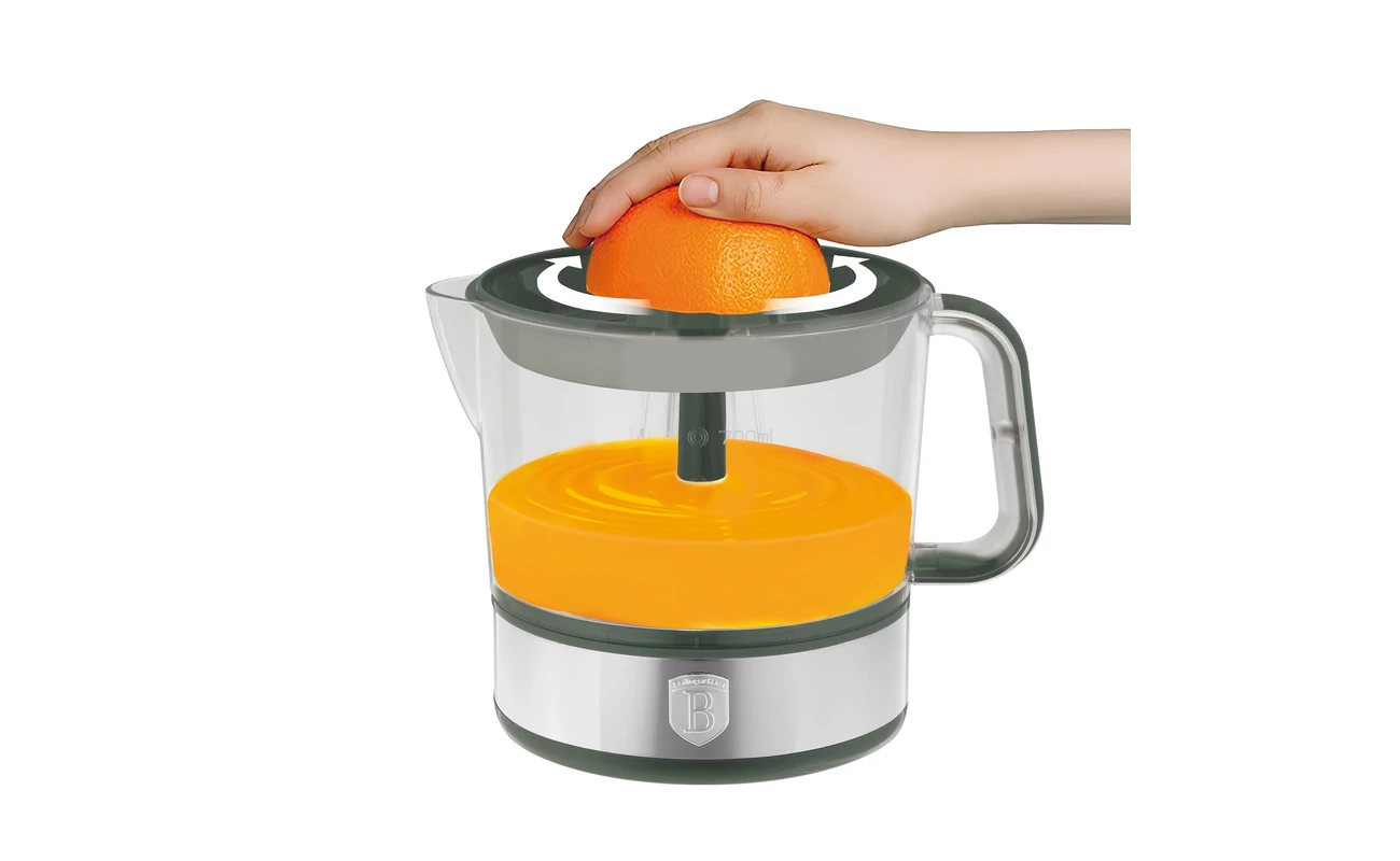 A Berlinger Haus elektromos facsaró két különböző méretű préselő tartozékkal rendelkezik, amelyek lehetővé teszik a különböző citrusfélék egyszerű és hatékony préselését. A kisebb préselő tartozék a lime és citrom préseléséhez ideális, míg a nagyobb tartozék a narancs és grapefruit préseléséhez ajánlott.